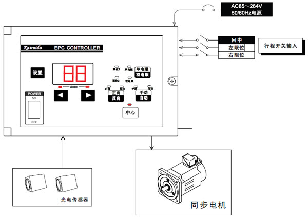 EPC-D12型光電糾偏控制器是一種跟蹤工作材料的邊緣或印刷線條進行高準確度的差動和擺動可選擇糾偏控制器。EPC-D12是由大規模工業集成電路組成,具有在惡劣工作環境下,抗干擾能力強,可靠性高,使用壽命長等優點。很適應包裝行業連續不停機生產工作需要,它已廣泛應用到塑料薄膜分切機、特種材料分切機、涂布機、印刷機、復合機等設備上。光電糾偏控制系統是有糾偏控制器、光電眼、電機伺服機構構成。