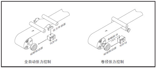 TC818可以設(shè)置為全自動張力控制器或卷徑張力控制器,當功能選擇[29][1]設(shè)置為自動張力控制時,TC818為全自動張力拉制器,需安裝張力傳感器,組成閉環(huán)控制系統(tǒng)。當功能選擇[29]設(shè)置為卷徑張力控制時,TC818為卷徑張力控制器,只需安裝接近開關(guān)/編碼器對料卷半徑進行測量,控制器根據(jù)卷徑張力控制。