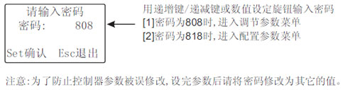 當控制器處于“自動控制”或“手動控制”顯示界面時,此鍵用于鎖定(防止誤操作)或解鎖,鍵鎖定后將使遞增鍵 、遞減鍵、Set/Esc鍵、自動/手動切換鍵、輸出開關(guān)鍵和數(shù)值設(shè)定旋鈕失效。