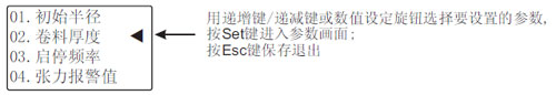 為了使控制器能正確測量卷料張力,必須對與張力測量相關(guān)的參數(shù)進行正確的設(shè)置:
